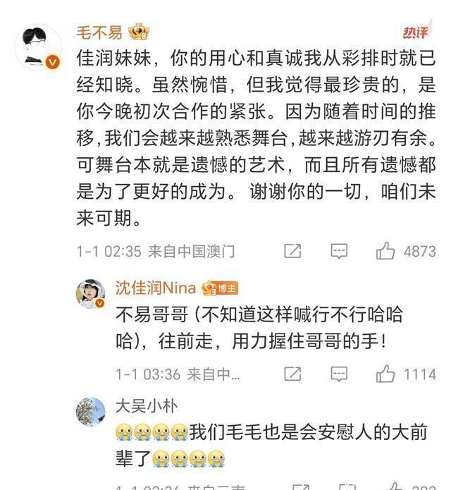 毛不易也很快做出回应,肯定了沈佳润的用心和真诚,体谅她初次登上大舞台时的紧张。