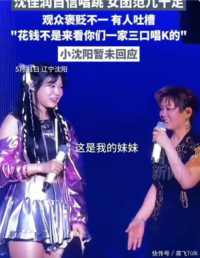 这已经不是沈家润第一次陷入争议了。 5月31日,小沈阳演唱会上沈佳润以神秘嘉宾身份登台就被观众批评过。 观众吐槽说:“花钱不是来看你们一家三口唱K的”“神秘嘉宾可以是你女儿,但不能只有你女儿”,并指出她的表演存在“跑调”“节奏卡不准”等问题。